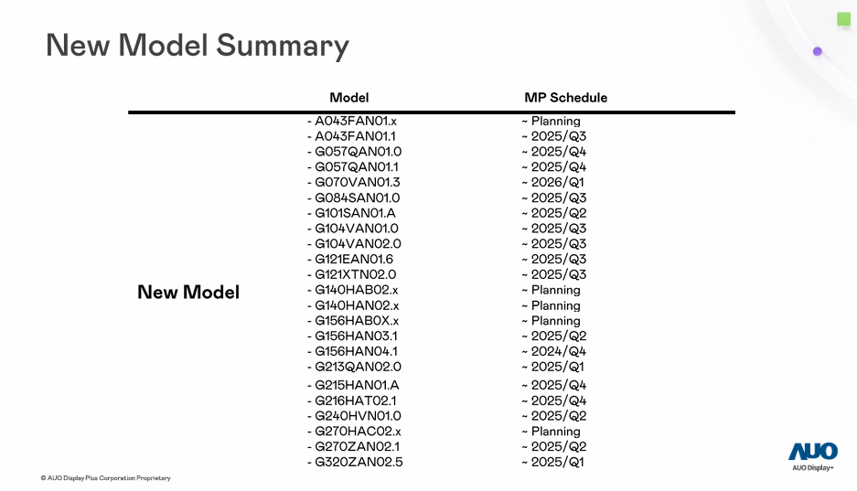 Summary of ADP General Display Product New Models,G057QAN01.0,GO57QAN01.1,G070VAN01.3