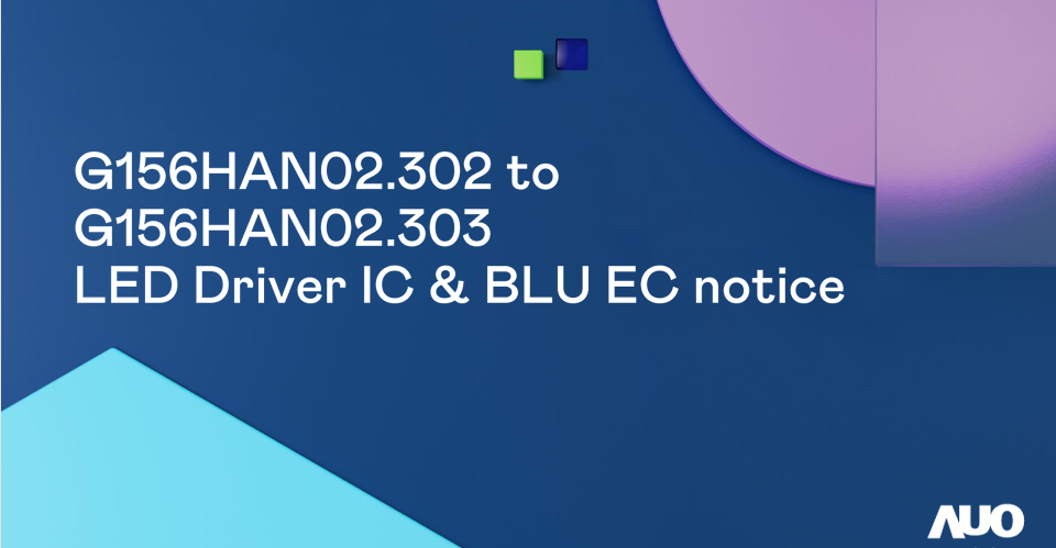 G156HAN02.302 to G156HAN02.303LED Driver lC & BLU EC notice,AUO Display Plus LED Driver IC & BLU EC,Purpose : In order to maintain product competitiveness, we would like to adopt new PCBA circuit with new LED driver IC(BD9276) and change to