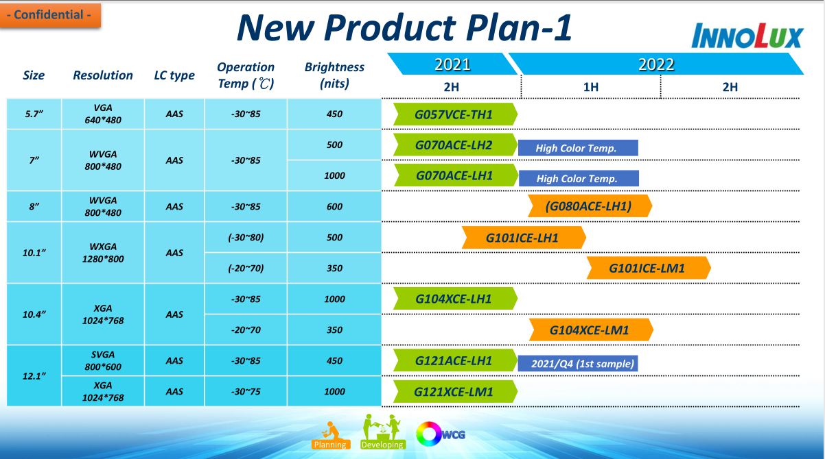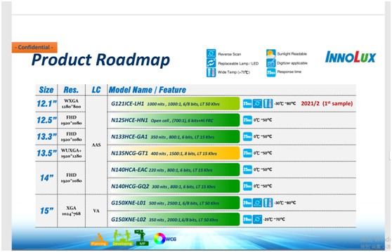 群創光電2021 2H Product Roadmap for New Product Plan(新產