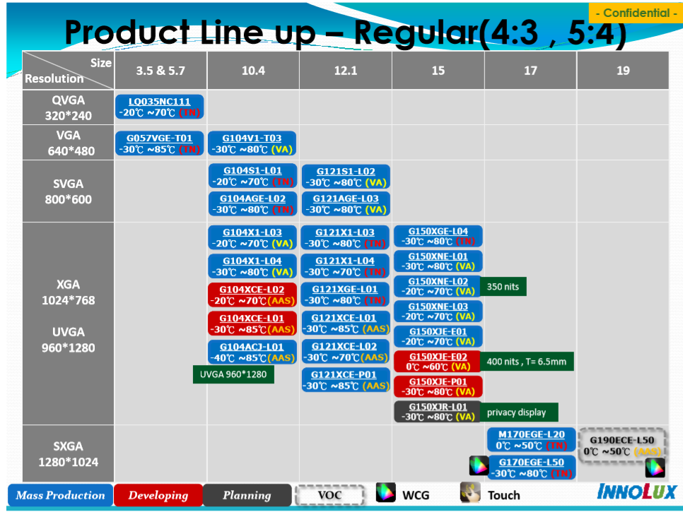 群創光電中小尺寸4:3和5:4常規工業液晶屏系列產