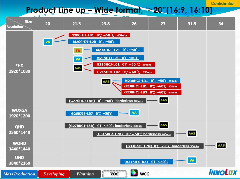 群創光電大于等于20寸的16:9和16:10常規工業液晶屏