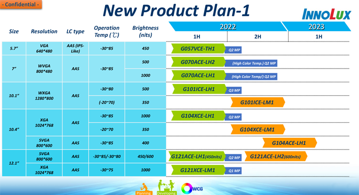 友達光電2022 Q2 Product Roadmap for New Product Plan